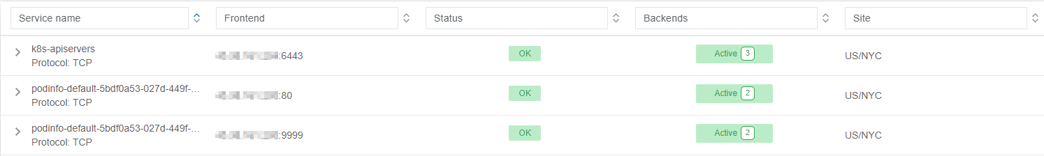 podinfo-default-5bdf0a53-027d-449f-8896-547e06028c6b-tcp-9999 active 45.38.161.13 9999/TCP US/NYC Admin OK 15m